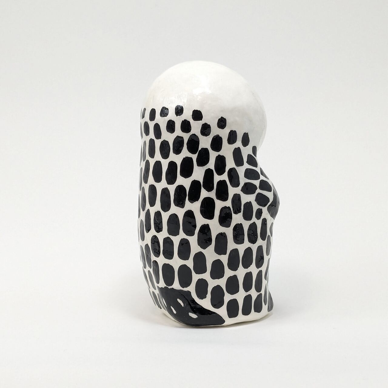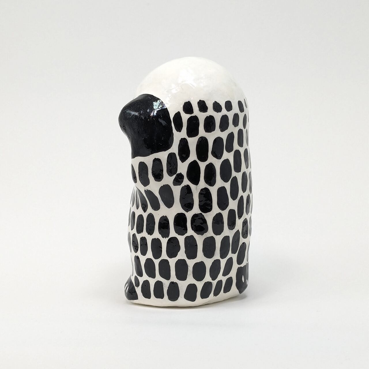 Adorable handmade sea otter papier-mâché is now available. This is a special one-of-a-kind piece, and its simple black-and-white design blends well with any interior. The size fits easily in the palm of your hand, yet has a great presence. The glossy surface attracts the viewer's eye and conveys a warm, handmade charm. Carefully crafted one by one, this papier-mâché is the perfect item to add color to your space.