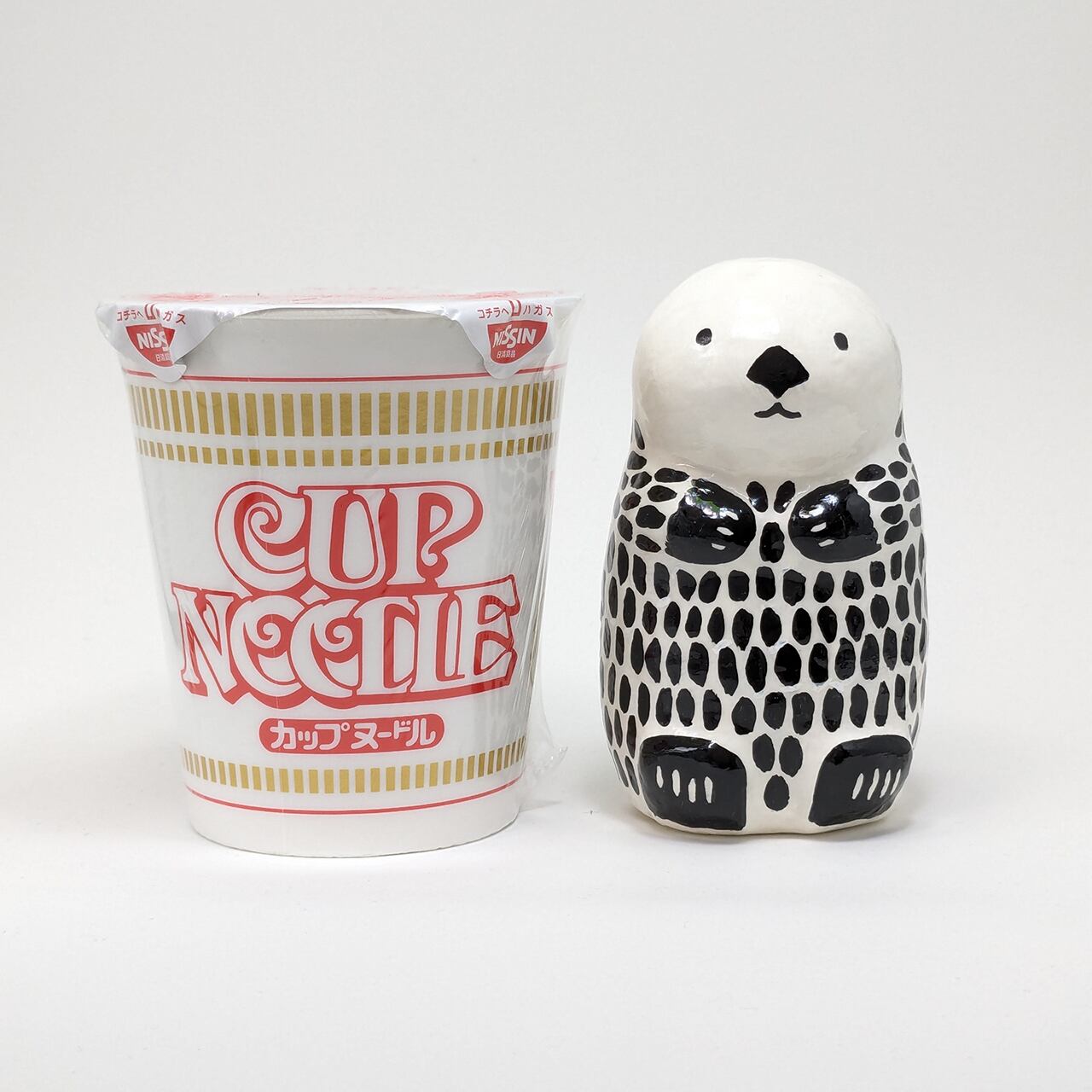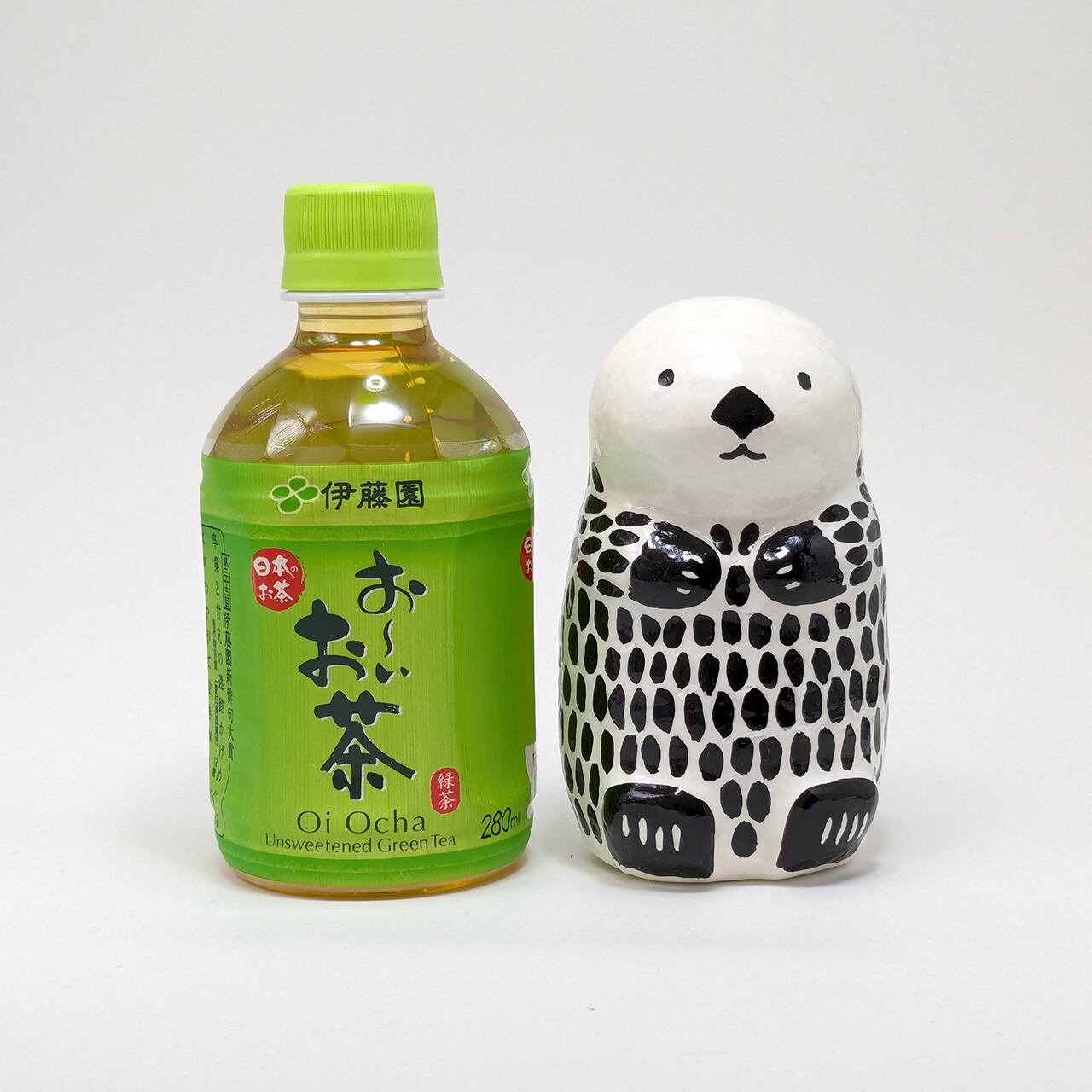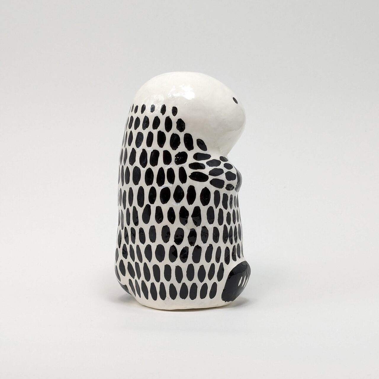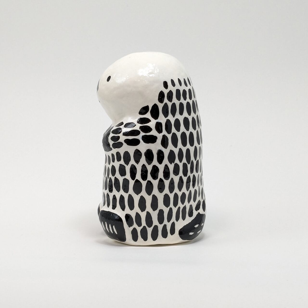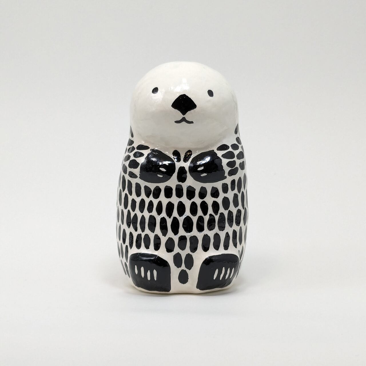 Adorable handmade sea otter papier-mâché is now available. This is a special one-of-a-kind piece, and its simple black-and-white design blends well with any interior. The size fits easily in the palm of your hand, yet has a great presence. The glossy surface attracts the viewer's eye and conveys a warm, handmade charm. Carefully crafted one by one, this papier-mâché is the perfect item to add color to your space.