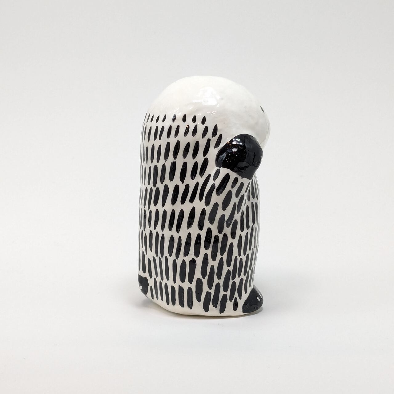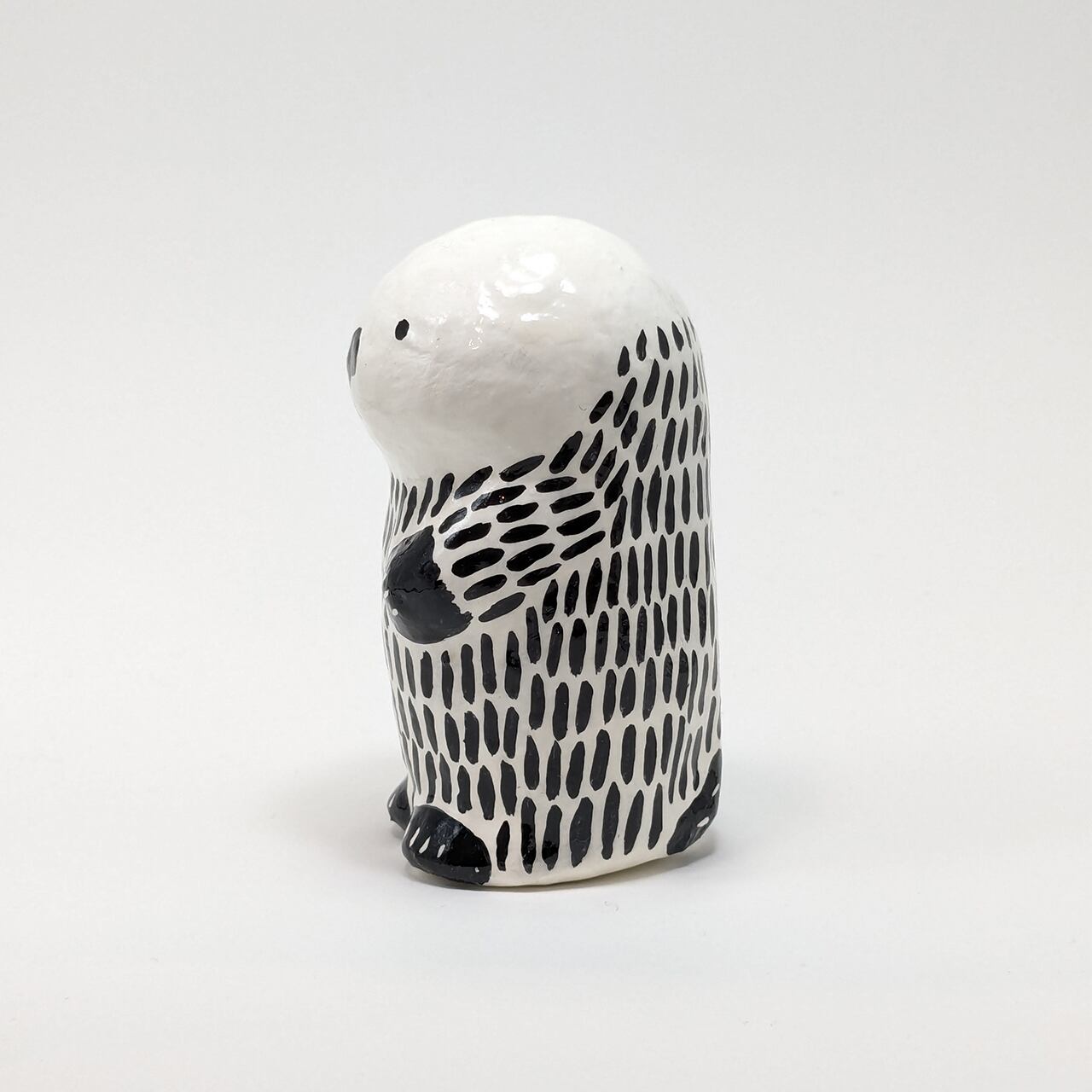 Adorable handmade sea otter papier-mâché is now available. This is a special one-of-a-kind piece, and its simple black-and-white design blends well with any interior. The size fits easily in the palm of your hand, yet has a great presence. The glossy surface attracts the viewer's eye and conveys a warm, handmade charm. Carefully crafted one by one, this papier-mâché is the perfect item to add color to your space.